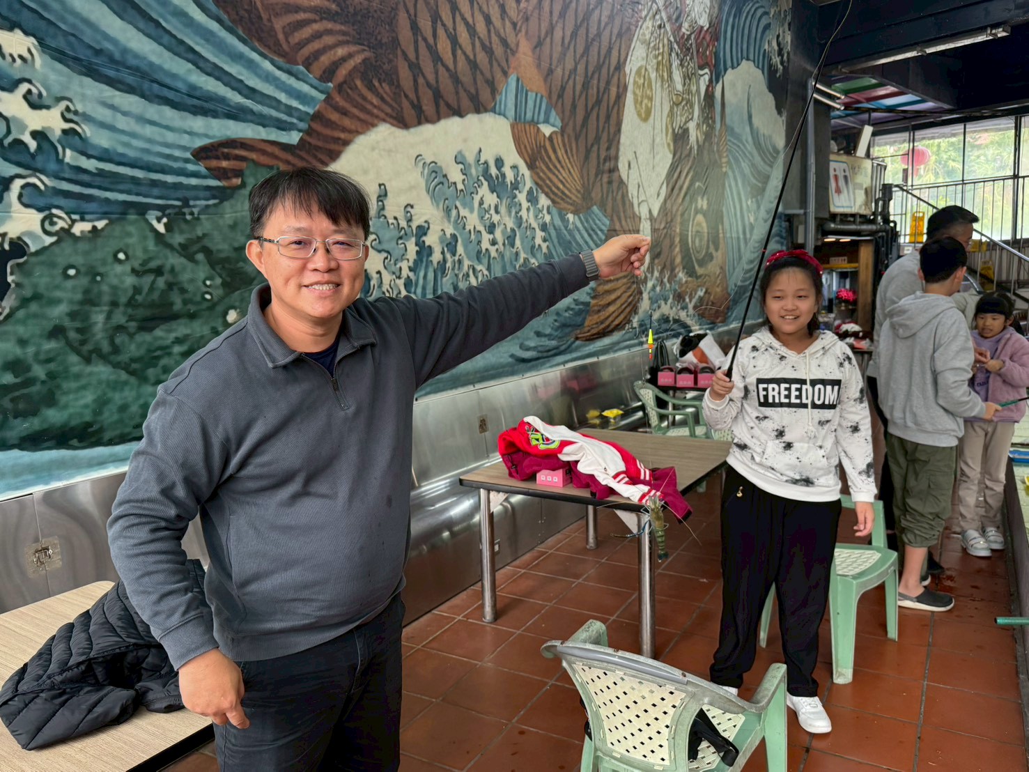本次比賽在外雙溪至善釣蝦場舉行,這也是北市公會第一次舉辦釣蝦比賽。一大早,參加的醫師與眷屬們陸續到場熱身、聊聊天。活動由洪榮杰理事長與趙子婷福利會主委一起倒蝦,正式揭開比賽序幕。