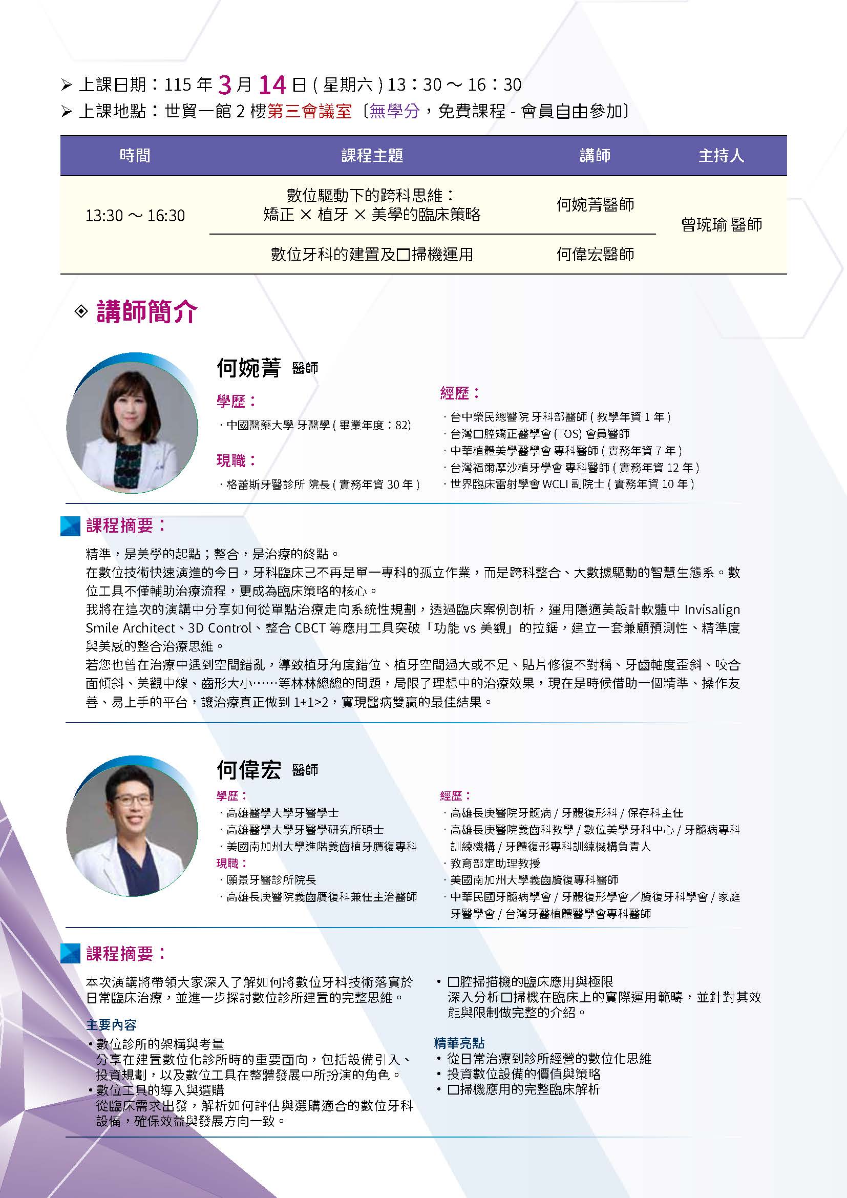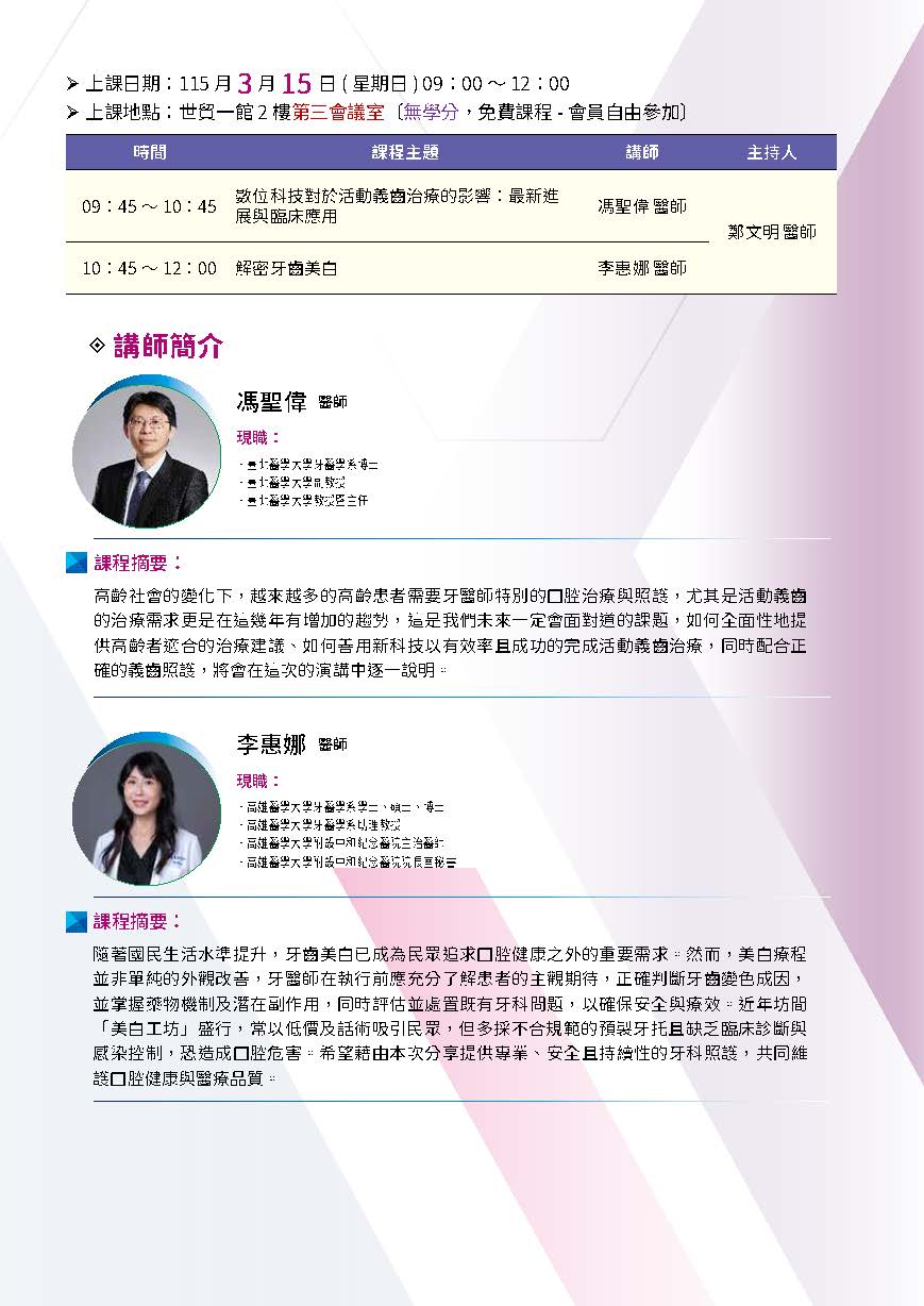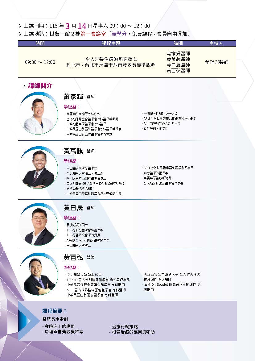 | 主辦單位 | 台北市牙醫師公會、新北市牙醫師公會 |