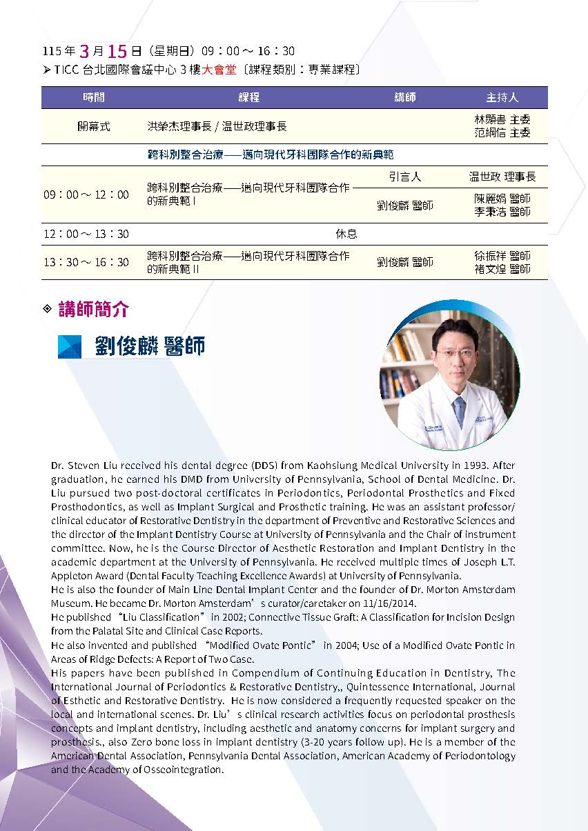 | 115/03/14 09:00 | 115/03/15 16:30 | 大會學術 | TICC大會堂 |