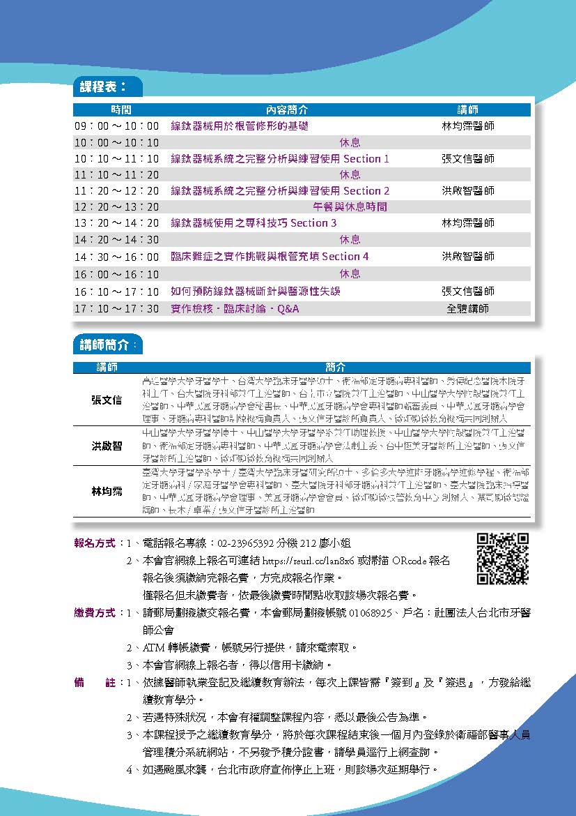 | 主辦單位 | 台北市牙醫師公會 |