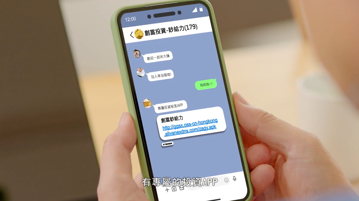 名人邀你加群組,群組暗樁真詐財!勿下載不明投資APP、配合匯款及面交金錢,守護荷包請撥打165。