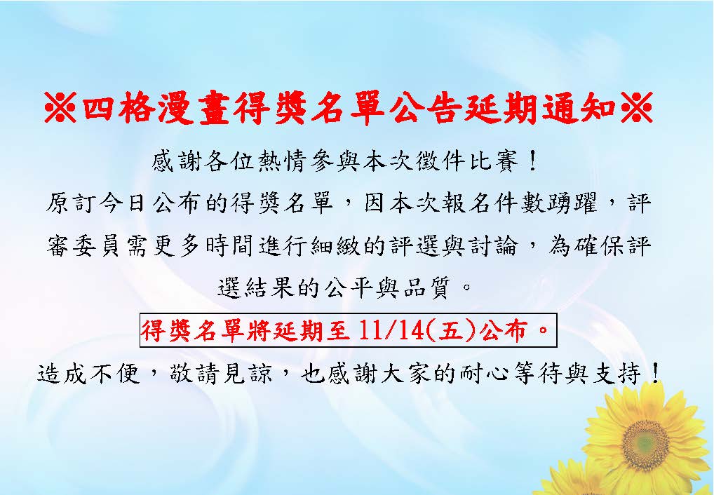 四格漫畫得獎名單公告延期通知 活動日期 114/10/31 09:00 - 114/11/14 17:00 活動地點 [國內] 台北市中正區忠孝東路二段120號7樓 主講人 主辦單位 台北市牙醫師公會 負責人 協辦單位 活動內容 聯絡資訊 聯絡人 聯絡電話 傳真 電子信箱 分享: twitter facebook LINE 返回 活動清單