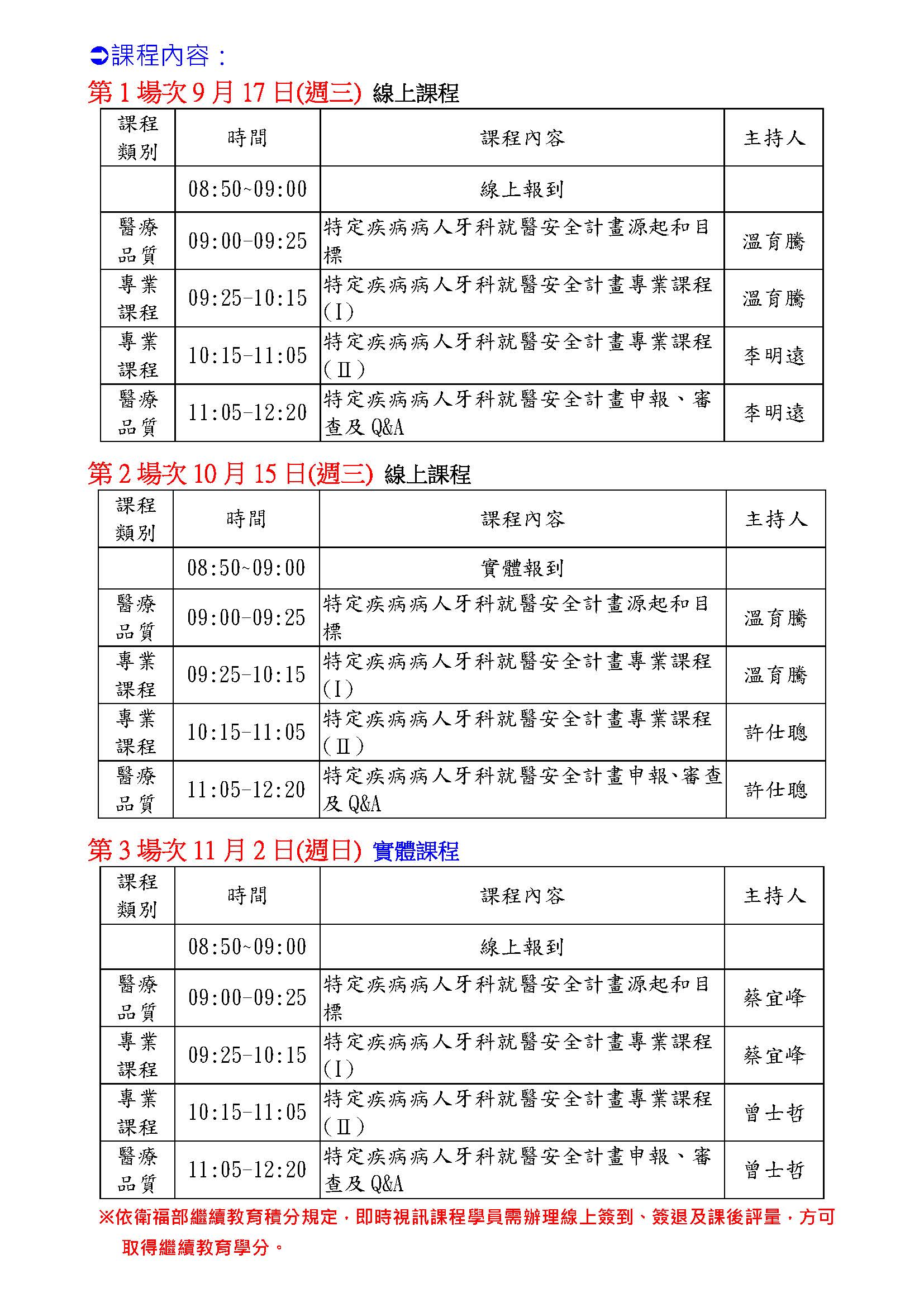 114/10/15 09:00 | 114/10/15 12:20 | 第2場次 | google meet | 30/450 |