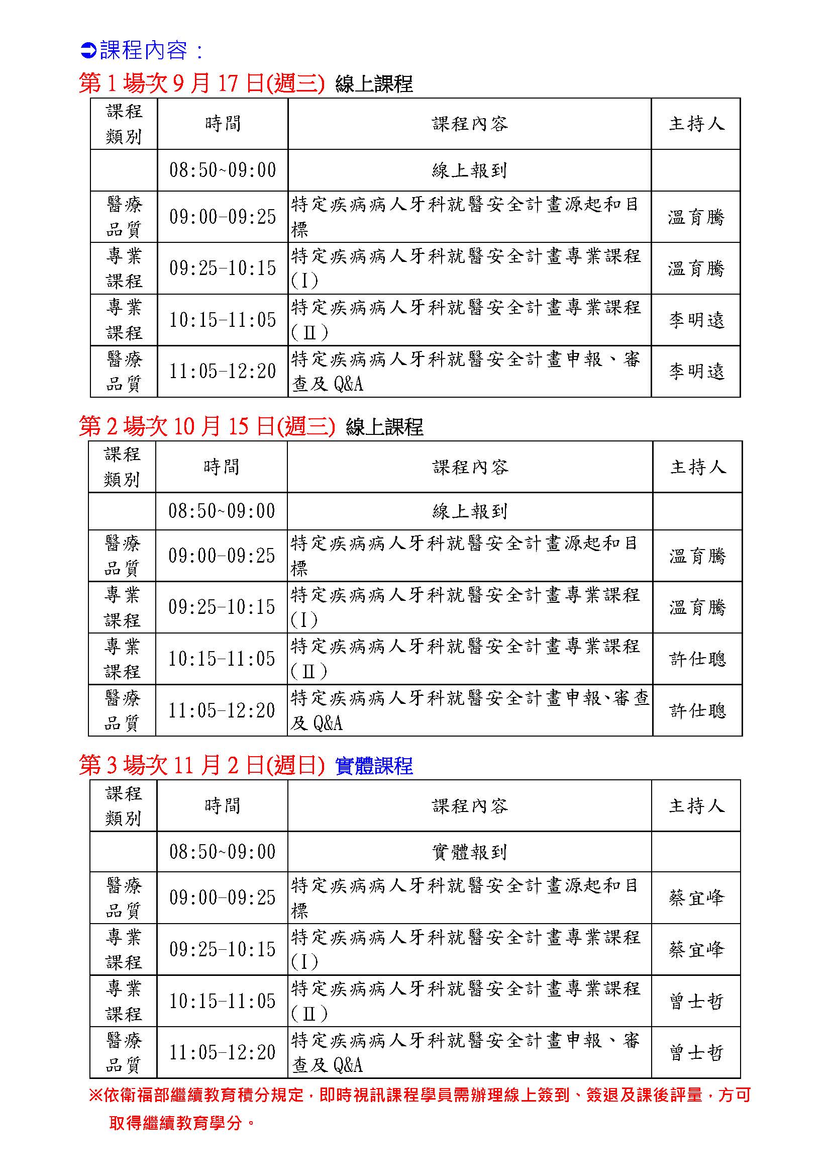 114年特定疾病病人牙科就醫安全計畫教育訓練課程第二梯次(限本會會員報名使用)