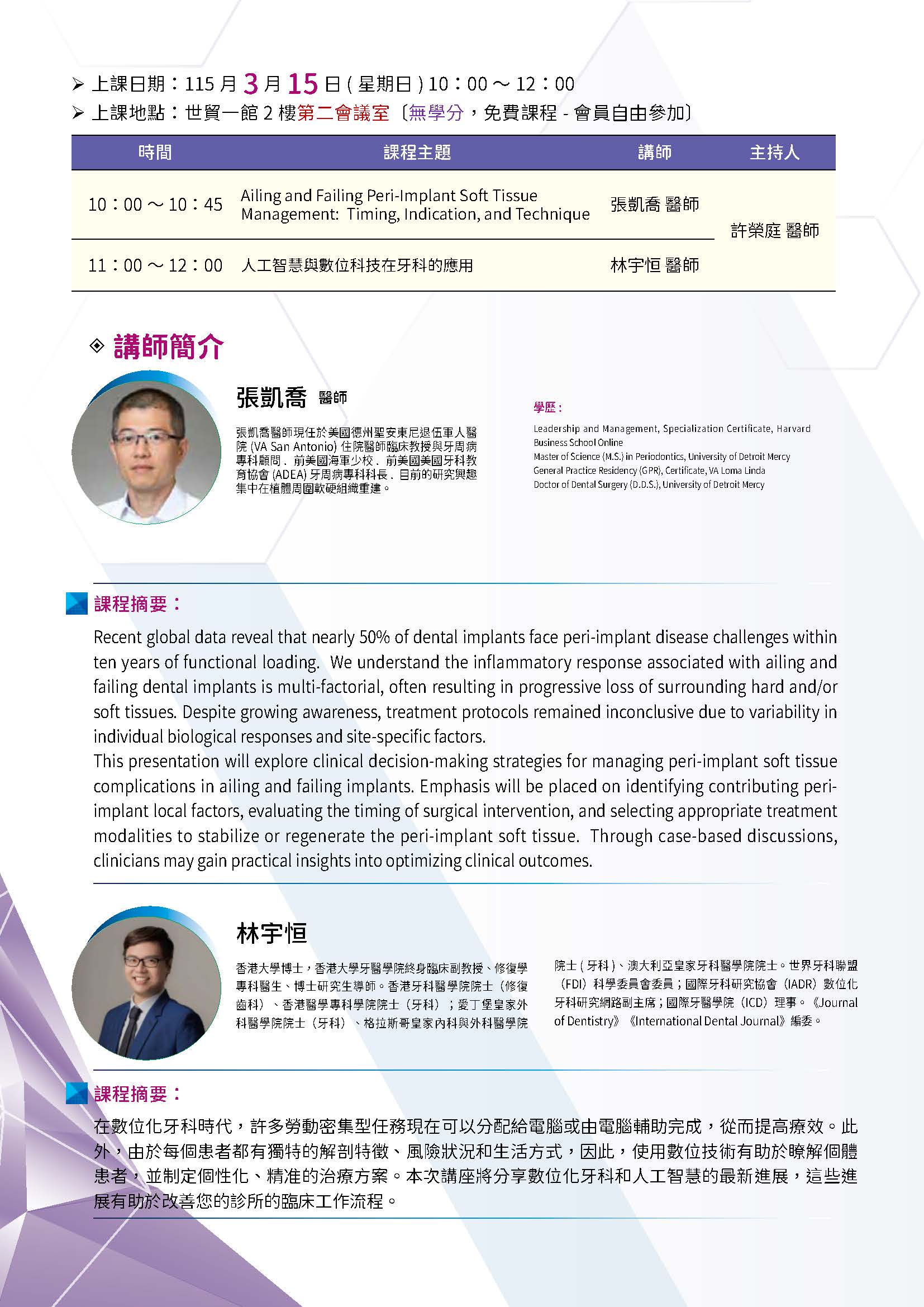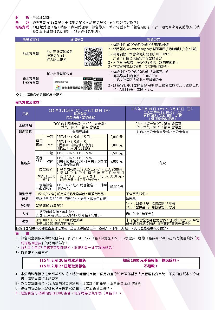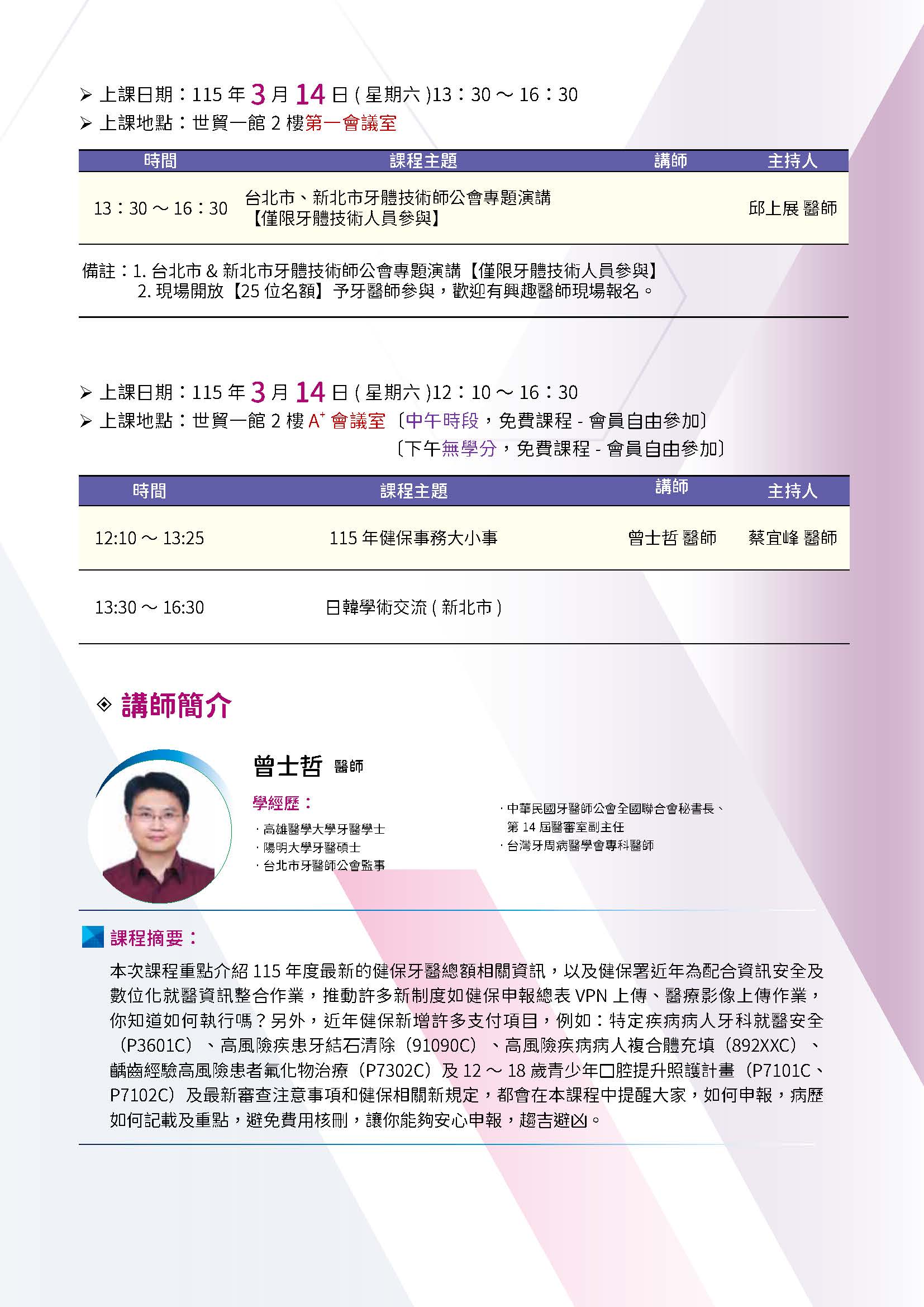 | 主辦單位 | 台北市牙醫師公會、新北市牙醫師公會 |