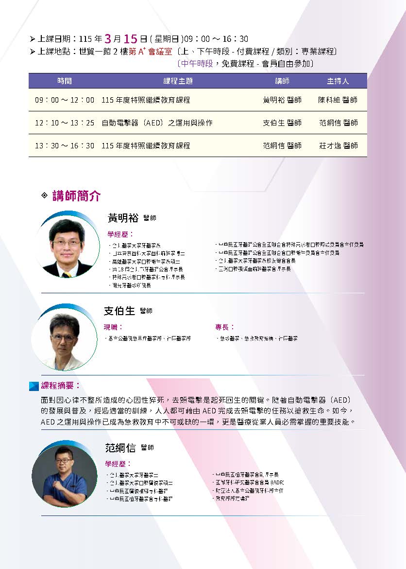 | 115/03/14 09:00 | 115/03/15 16:30 | 大會學術 | TICC大會堂 |