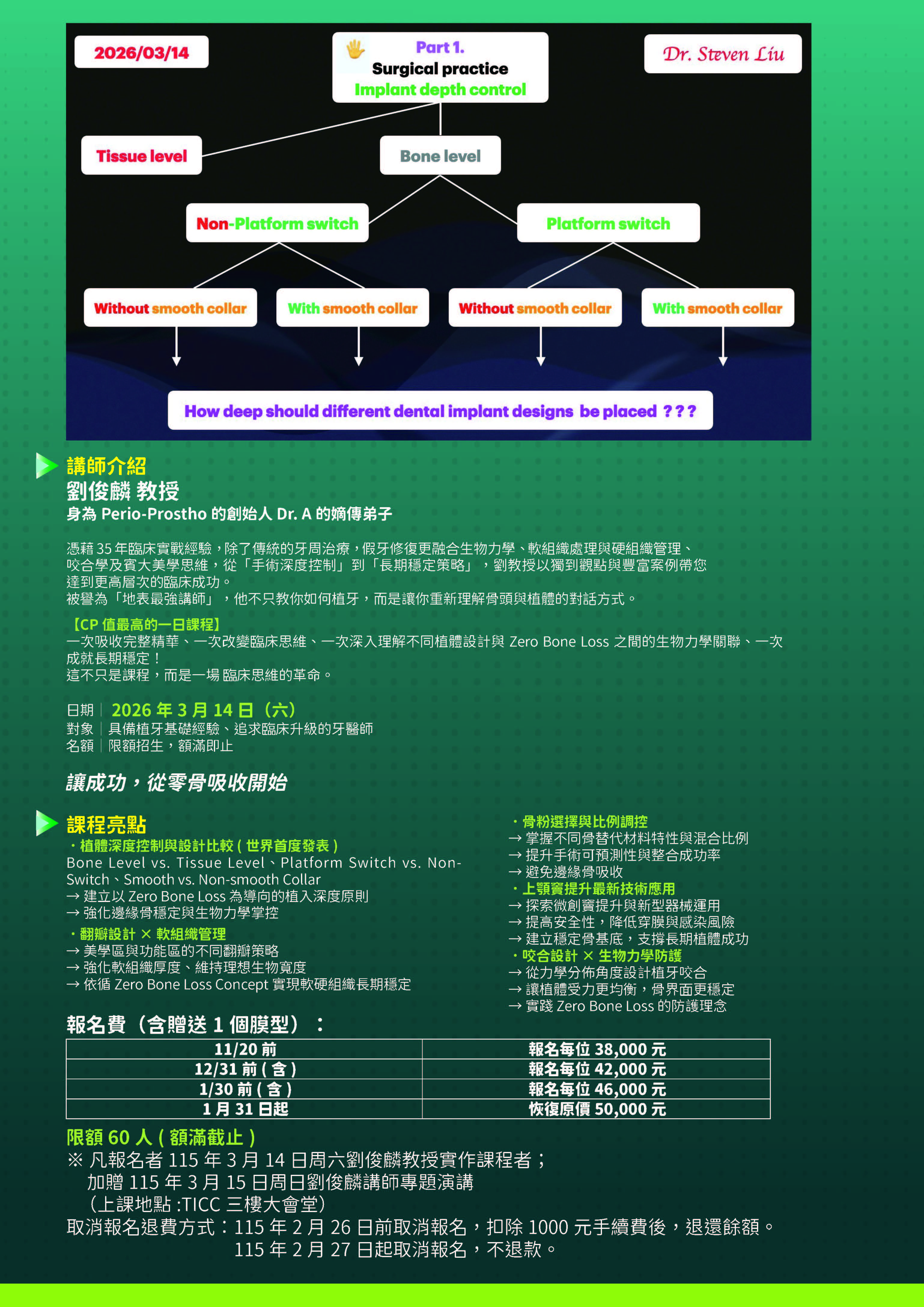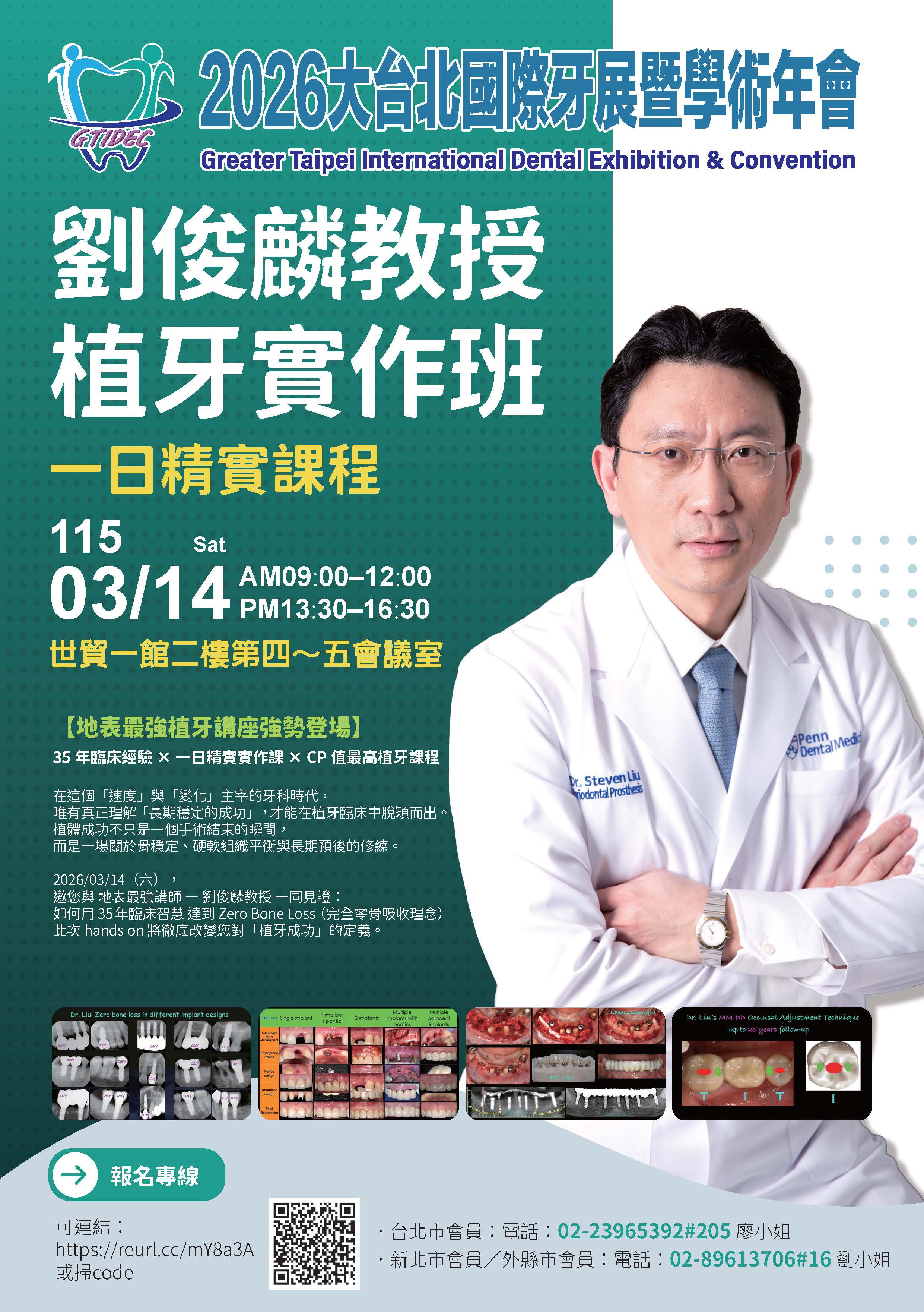 2026大台北國際牙展暨學術年會學術研討會-劉俊麟教授實作課程
