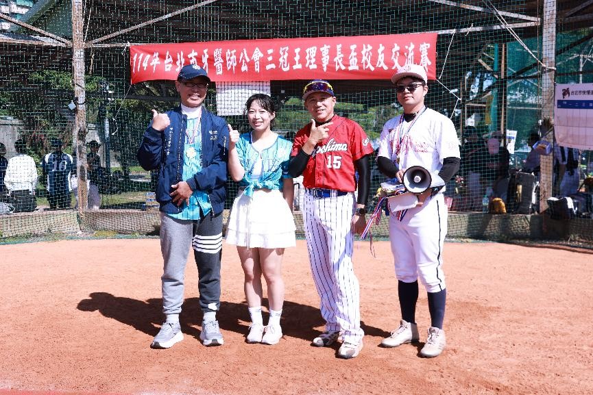 此次活動亦特別慶祝台北市牙醫師公會於10月19日全國慢速壘球賽中榮獲甲組、健康組、快樂組三冠王的佳績,洪榮杰理事長特別準備紀念獎牌頒發予代表選手,肯定球員們的努力與榮耀。趙子婷主委亦到場為選手們加油打氣,為賽事增添溫馨氣氛。本次比賽在壘球隊現任隊長謝宗樺醫師、活動承辦人趙子祐醫師的用心籌備下順利完成,賽事圓滿落幕,為公會與校友間留下美好回憶。