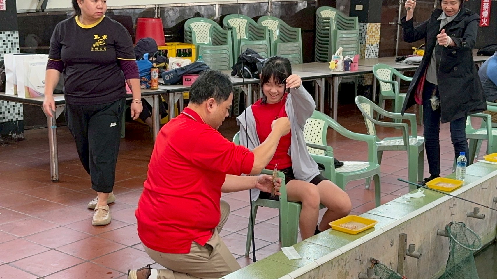 比賽分成貴賓組、青少組、壯年組及長青組四個組別,不只醫師們專心釣蝦,許多小朋友也親自拿起釣竿體驗釣蝦的樂趣。釣蝦場老闆準備的蝦子都很有活力,現場不時傳來起蝦成功的歡呼聲。當小朋友成功釣起蝦子時,身旁的醫師與家人也會貼心幫忙把蝦子拿起來放好,互動畫面十分溫馨。