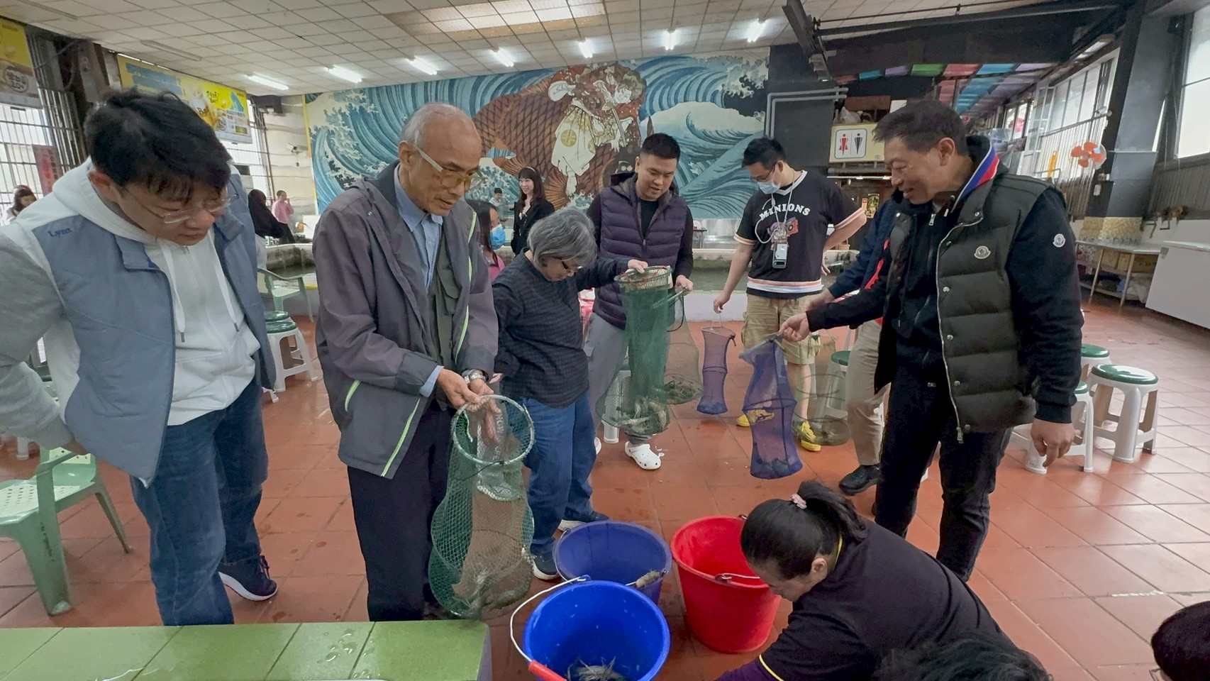 本次比賽在外雙溪至善釣蝦場舉行,這也是北市公會第一次舉辦釣蝦比賽。一大早,參加的醫師與眷屬們陸續到場熱身、聊聊天。活動由洪榮杰理事長與趙子婷福利會主委一起倒蝦,正式揭開比賽序幕。