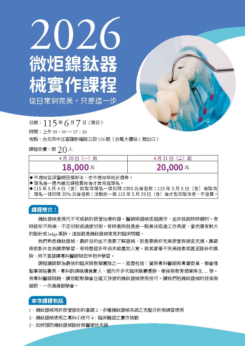 2026微炬鎳鈦器械實作課程:從日常到完美,只差這一步